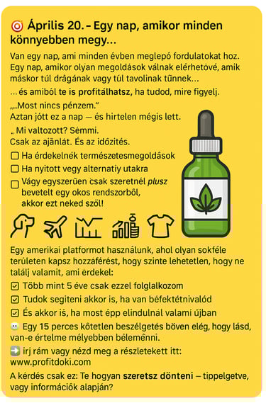 2025. április 18-21. között a Húsvét és a Cannabis Napok alkalmából különleges kedvezménnyel vásárolhatsz: